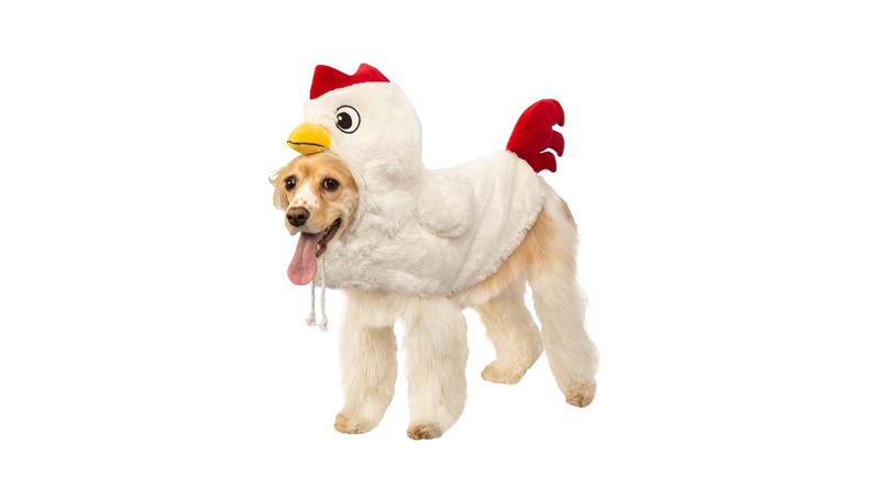 The chicken-shaped costume, made of off-white fluffy material and with a cute beak, fits dogs perfectly and is extremely adorable.