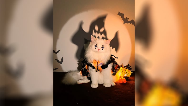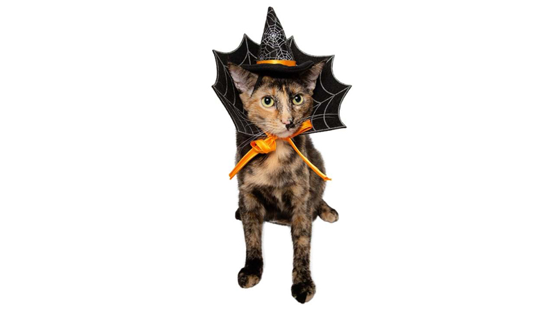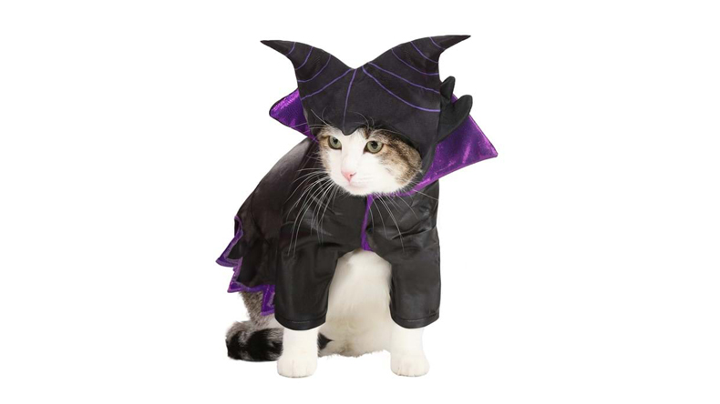 The look of the movie villain Maleficent, with a black robe and pointed horns, makes pets instantly turn into evil witches.