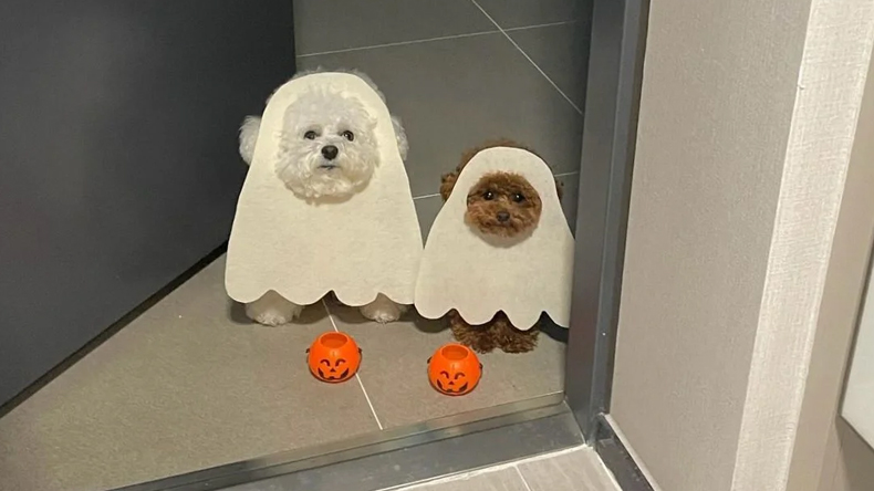 The cute ghost look can be completely DIYed by pet owners. It is simple but very cute!