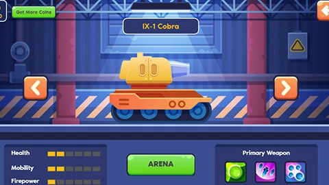 Destroy your opponent's tank in this thrilling PvP real-time multiplayer game. Choose from a variety of weapons to deal massive damage to your enemies. Earn coins to unlock new tanks. Use emojis to taunt your opponents.